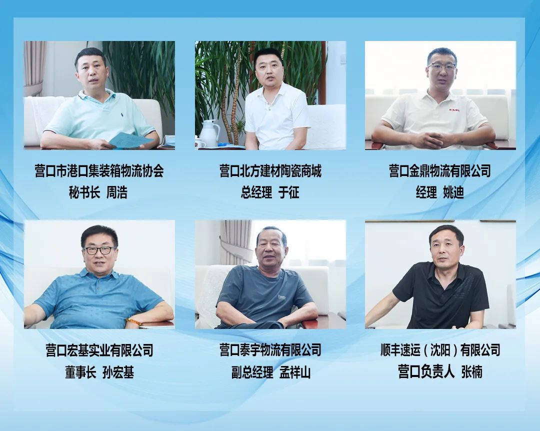 营口市港口集装箱物流协会秘书长周浩;营口北方建材陶瓷商城总经理于征;营口金鼎物流有限公司经理姚迪;营口宏基实业有限公司董事长孙宏基;营口泰宇物流有限公司副总经理孟祥山;顺丰速运(沈阳)有限公司营口负责人张楠应邀参加。