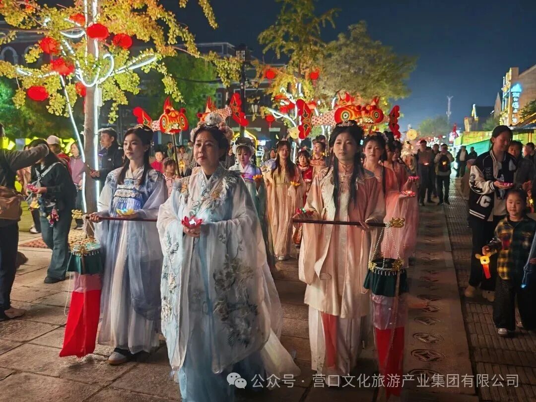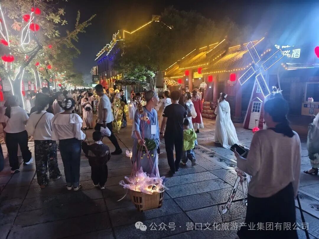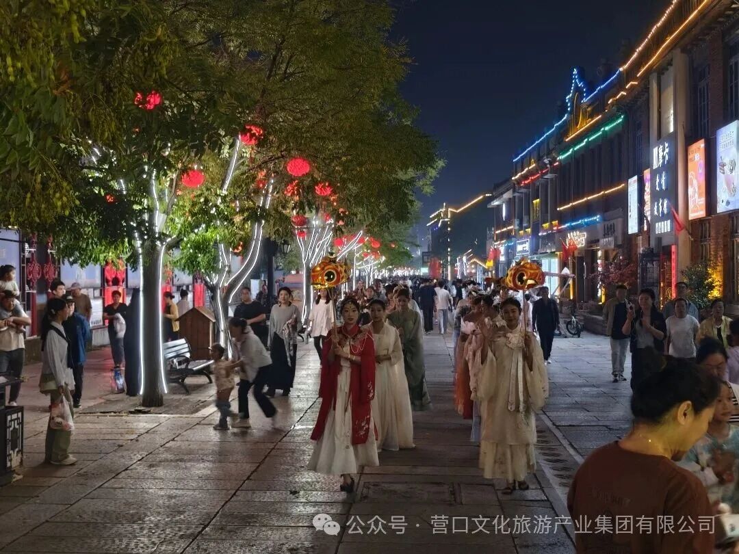 辽河老街灯火璀璨而夺目,跟着嫦娥仙子提灯夜游,赏良辰美景,拍国风美照,举杯遥看明月,犹如穿越千年,沿街更有仙女相赠月饼,将传统佳节的氛围感直线拉满。