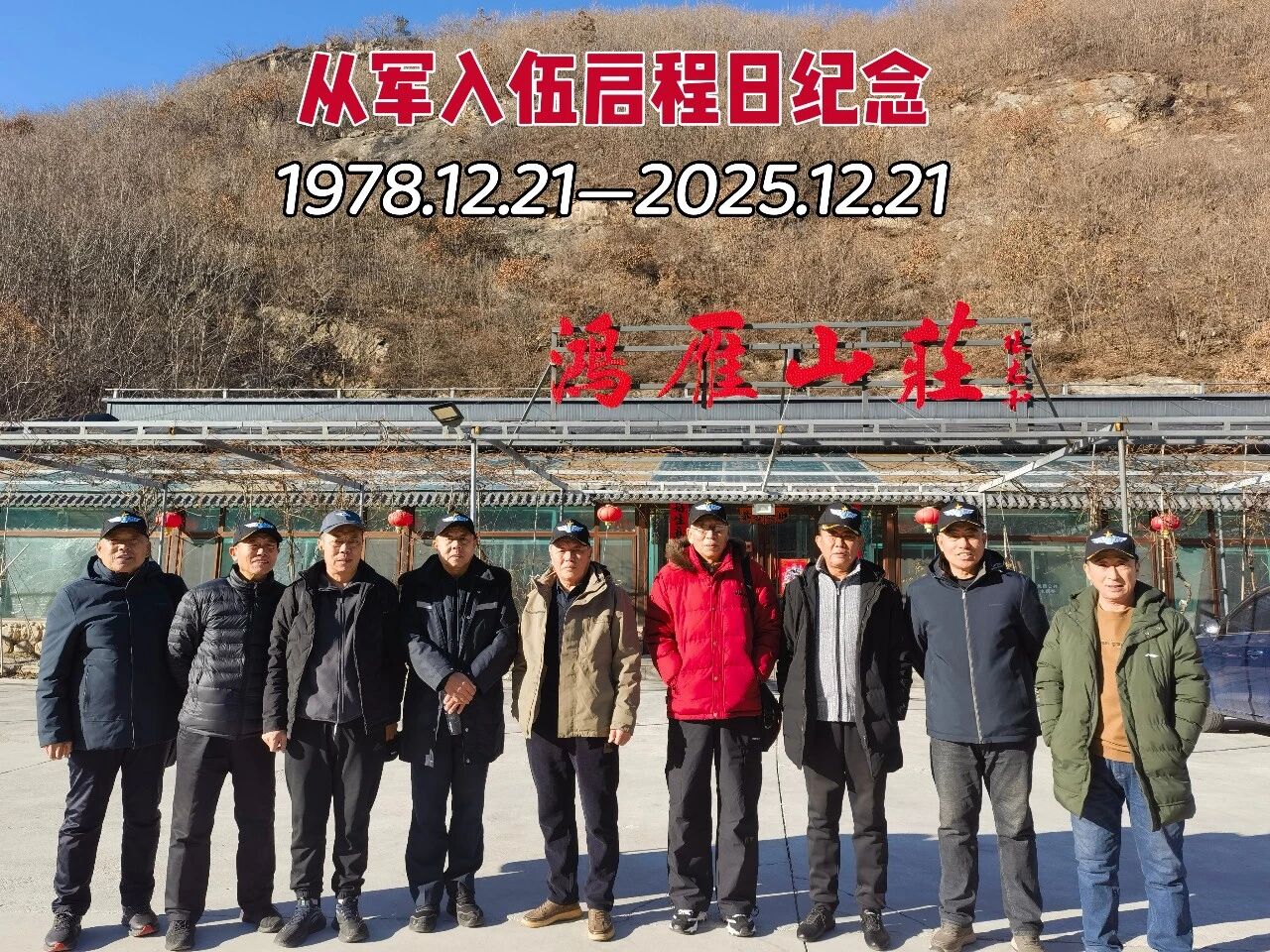 47年前的12月21日,一群热血青年光荣入伍。近半世纪的风雨吹散了韶华,却吹不散刻在骨子里的军魂。老兵重聚,皱纹里藏着往昔的峥嵘,眼眸中盛着不变的忠诚。纵使容颜老去,那份保家卫国的赤诚依旧炽热,惟愿山河锦绣、祖国永昌。--@一佳老也