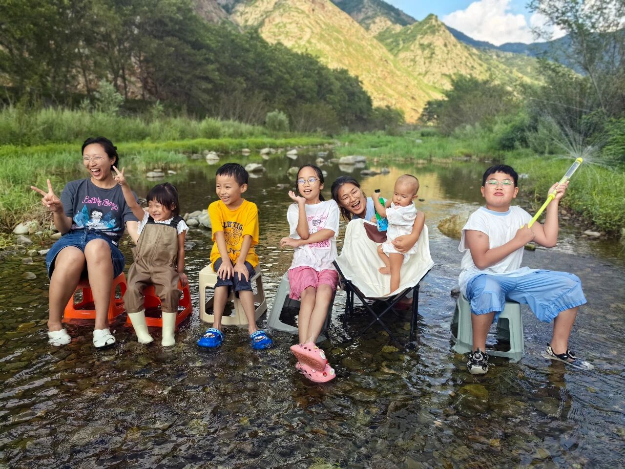 一起吃过的美食、一起看过的风景,每一帧笑脸都留在夏天的小山涧里了。--@Anqimama